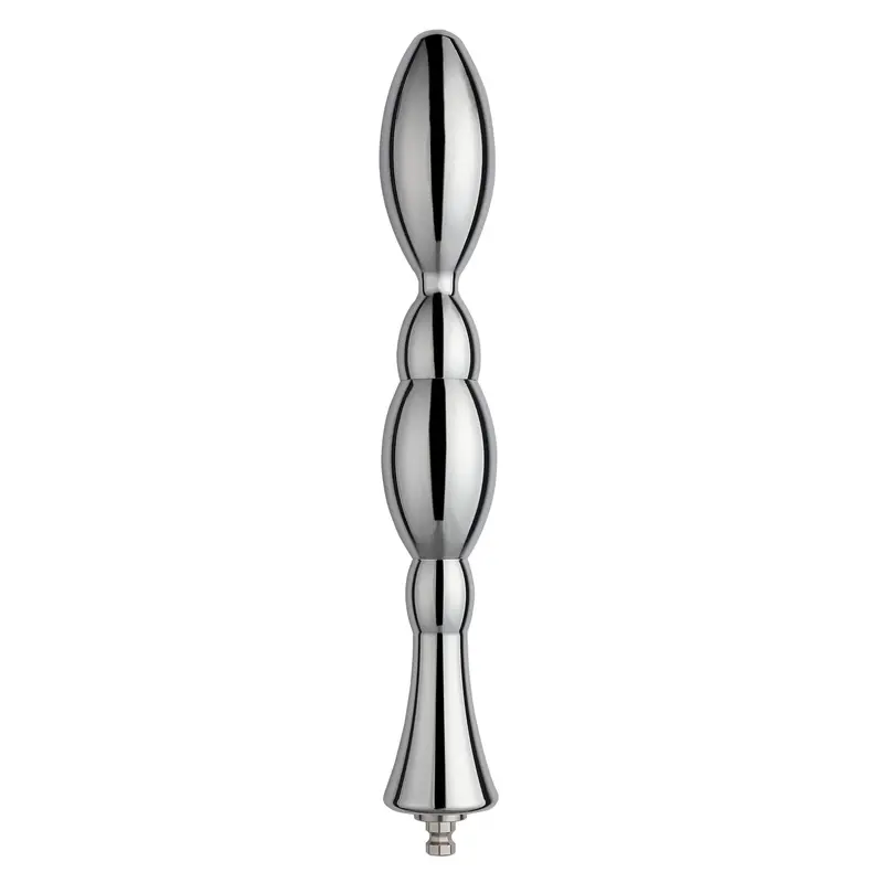 Engelse tekst zou ik van maken: This sleek anal dildo is made of 100% aluminium and has a very smooth surface, which makes the dildo penetrate softly. The anal dildo is perfect for the more experienced user. Before use, warm or cool the dildo for extra pleasure. It measures 21 cm in length, a diameter of 3.2 cm and has a weight of 280 grams. The anal dildo has a KlicLok® connector, so attach the dildo to the Premium Sex Machine and let the pleasure flow.