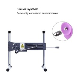 KlicLok® est le système de connexion utilisé pour monter les godemichés sur les machines sexuelles. Le connecteur KlicLok® peut être dévissé du gode, ce qui permet d'y fixer une ventouse. Grâce à la forte ventouse fournie, vous pouvez également utiliser le godemichet comme godemichet à ventouse. Il se fixe sur n'importe quelle surface lisse et plate. Vous pouvez donc profiter de ce gode deux fois : en combinaison avec l'une de nos machines sexuelles et en tant que gode à ventouse !