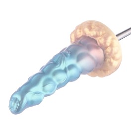 The KlicLok connector fits perfectly on the Hismith Premium sex machine for a hands-free experience of a higher level, and the strong suction cup allows you to firmly attach Auregon to any smooth surface - simply unscrew the connector for optimal use as a suction cup dildo. Whether exploring solo or playing together, Auregon will take you to new heights of excitement. Made of 100% premium silicone, this fantasy dildo feels silky smooth and is fully waterproof - ideal for exciting adventures in the shower or bath. The enchanting blue-gold color adds a magical touch to your collection. Do you dare to tame Auregon? Or will you surrender to his dragon power?