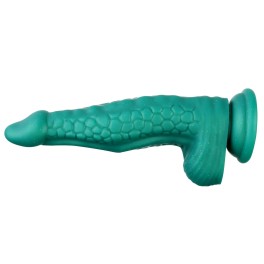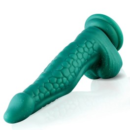 Discover the ultimate experience with the CrocoKing Fantasy Dildo, the eye-catching Fantasy KlicLok dildo made of 100% premium silicone, designed to excite all your senses. This beautiful green fantasy dildo has a total length of 25 cm and an insertion length of 19.8 cm. With a thickness of 5.7 cm at its widest point and 3.6 cm at its narrowest point, plus a solid weight of 643 grams, it delivers an intense experience. The CrocoKing is not just another fantasy dildo; it has a scaly crocodile pattern that provides an intense sensation with every movement. Thanks to its round, triangular shape, it slides in effortlessly and offers optimal stimulation with a thicker waist in the middle. Equipped with the KlicLok connector, this fantasy dildo is perfect for pairing with your favorite Premium Hismith sex machine or as a powerful suction cup dildo for hands-free pleasure. Especially suited for lovers of extra thickness and texture, this fantasy dildo can be used both anally and vaginally. Its unique shape and texture provide deep g-spot stimulation and intense clenching sensation.