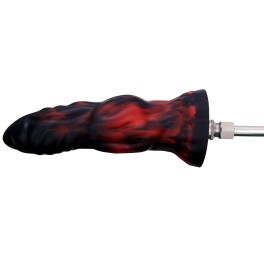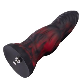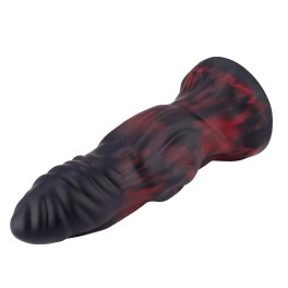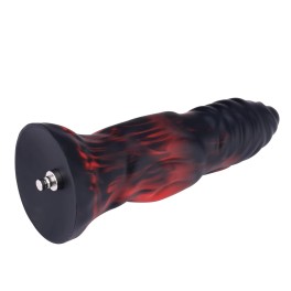 Discover the Black Flame Fantasy Dildo, a unique dildo in the fiery colors of black and red, made of 100% premium silicone for a comfortable and safe experience. This fantasy dildo has a sleek, tapered shape with a narrow tip and a wider bottom, making for easy insertion. The total length of the dildo is 22 cm, of which 18.2 cm is insertable. At the tip, it has a width of 5.1 cm, while the width at the base increases to 6.5 cm, offering additional stimulation. The Black Flame has two smooth, subtle bumps in the middle, allowing you to experiment with different widths. Thanks to the large suction cup at the bottom, it can also be perfectly used as an anal plug. Moreover, it is equipped with a KlicLok connector, allowing it to be easily attached to the Hismith Premium sex machine or used as a powerful suction cup dildo for hands-free pleasure. Whether you want to explore new anal toys or are just looking for a versatile dildo, the Black Flame offers an exciting and comfortable experience.